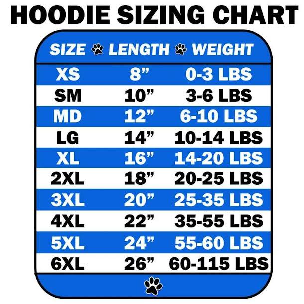 Customer Disclaimer: These hoodies can be used for cats as well but you must reference the size chart for the appropriate weight/lbs of your cat. Special orders or requests may have additional fee charges. Call or Email for a quote.